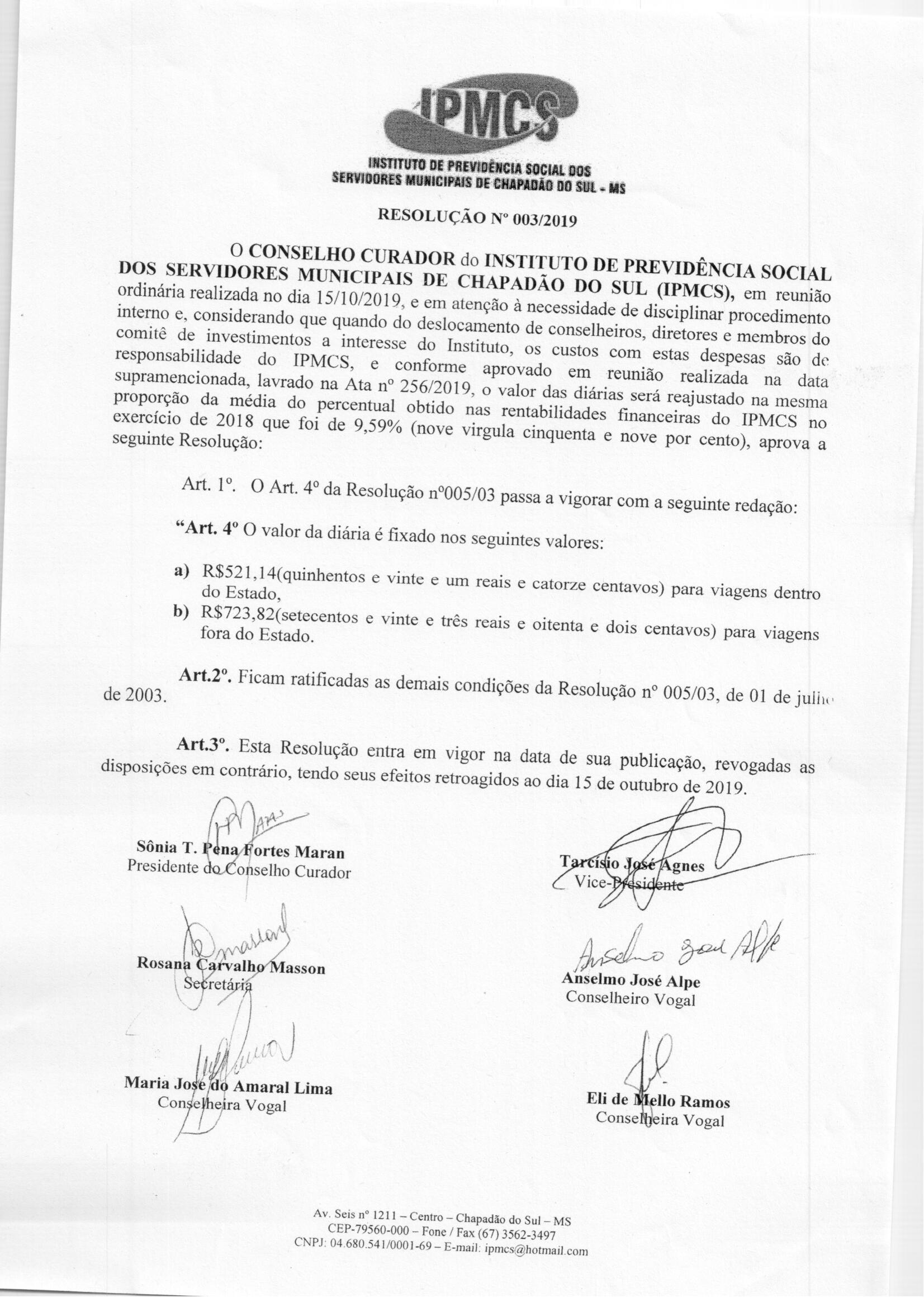 Resolução do Conselho Curador nº 003/2019 |
